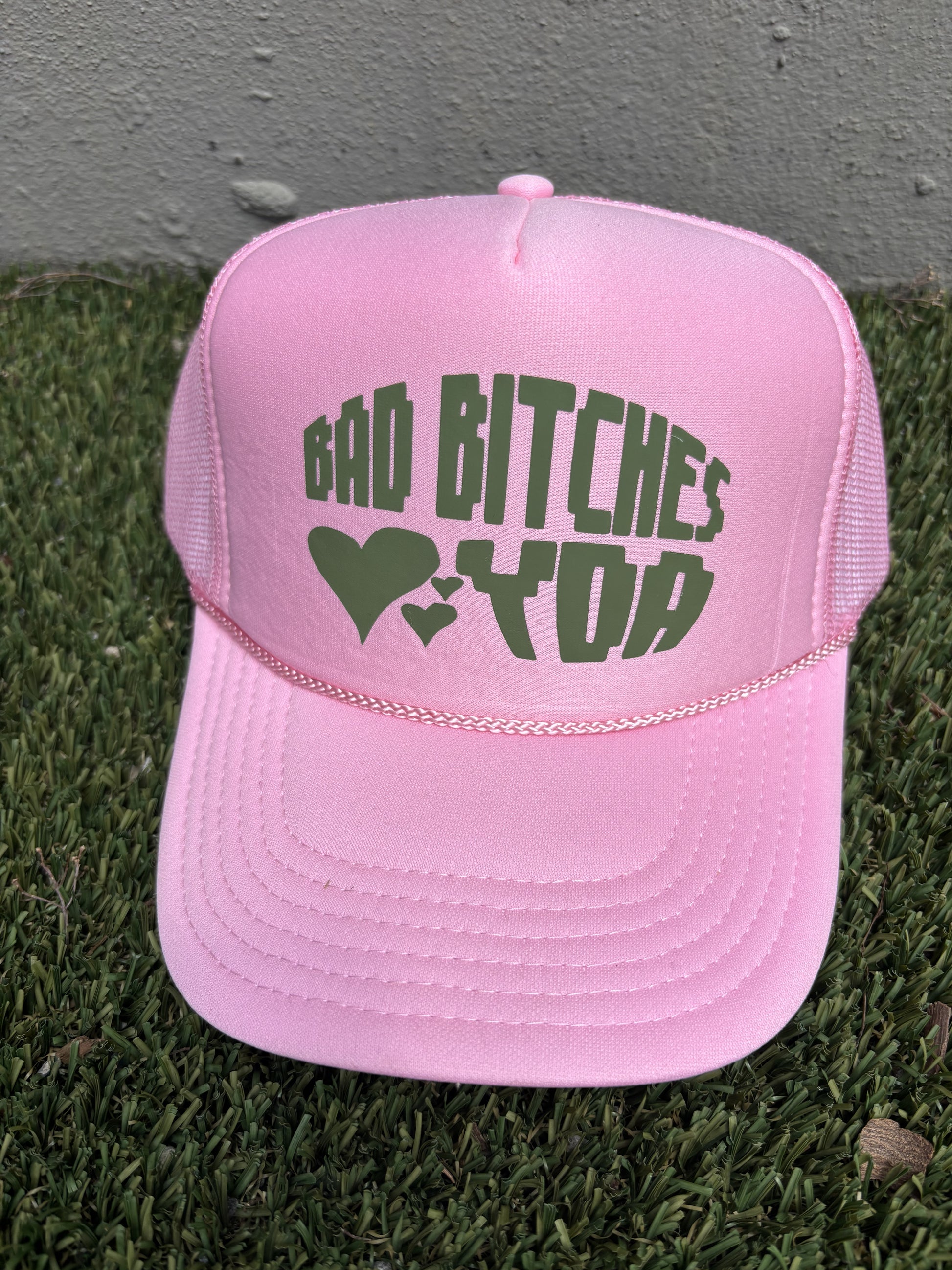 PINK OLIVE GREEN BAD BITCHES LOVE YDA TRUCKER HAT