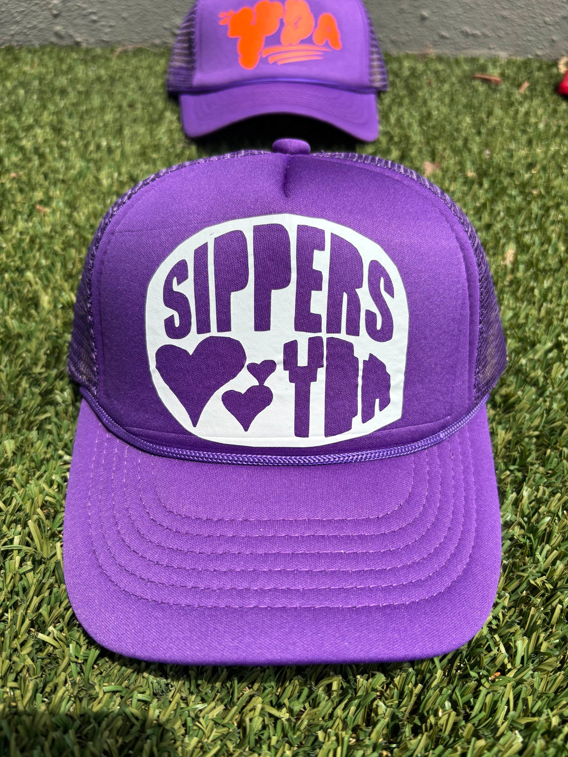 ROYAL WHITE OUTLINED SIPPERS LOVE YDA TRUCKER HAT